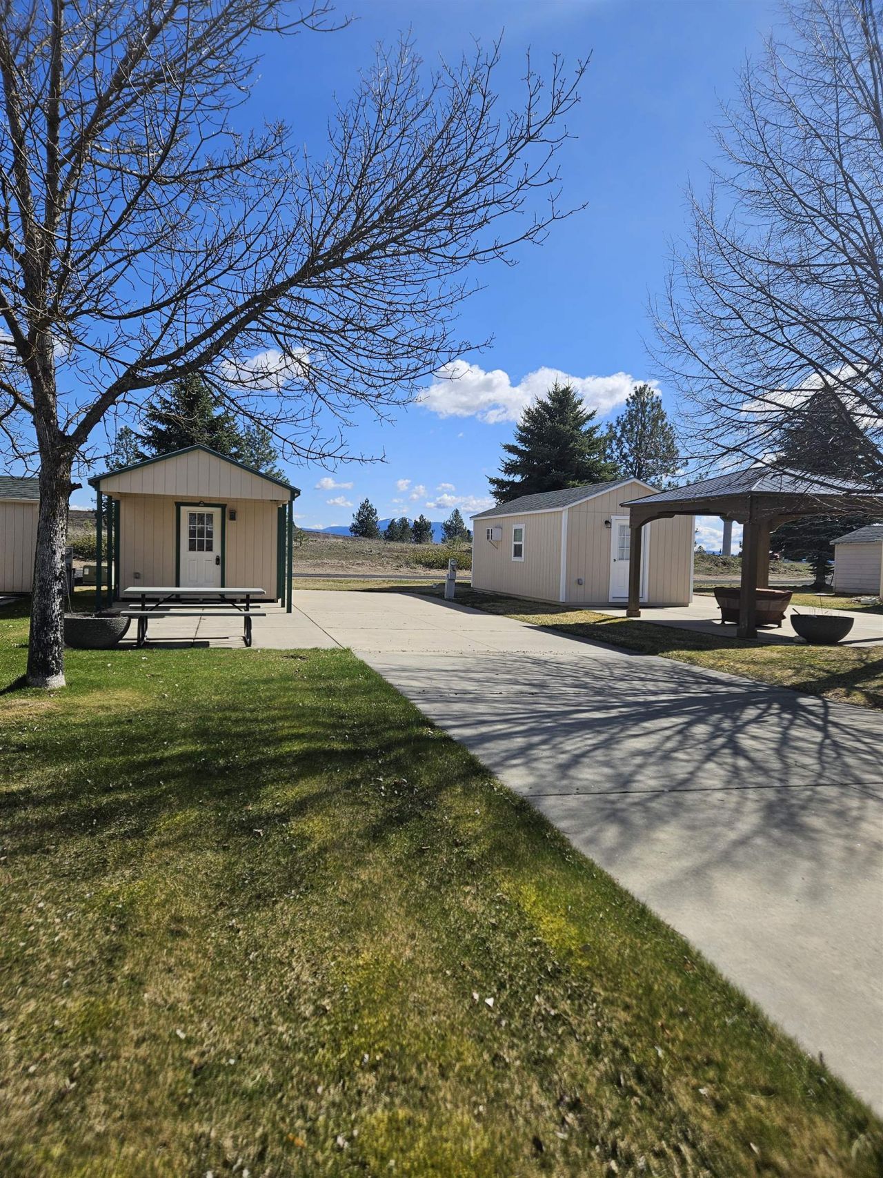 Get away from it all and Enjoy Rv resort living, with stunning views of a beautifully landscaped golf course. 55 + Community Conveniently located just 15 min from Spokane. 125X36 Pull through lot with Full hook ups for motor home, 5th wheel, travel trailer or park model. With frost free spigot for winter use. 12X20 shed with additional 10overhang is wired for television, insulated, wired and sheet rocked w dual purpose AC/heat. There are multiple outlets inside and outside. And a double door on the back. Great value as association dues are only $130 a month and cover Deer Park amenities (pool, hot tub, pavilion, laundry, showers, pickle courts, bocce ball etc.. ) Cable tv, Park wifi, water, sewer and landscape maintenance. Pet friendly with 2 dog parks for your furry friends.