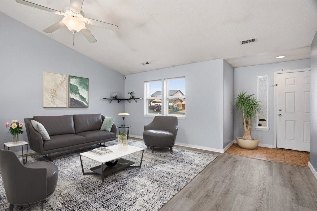 Welcome to this inviting 3-bedroom, 2-bath home offering comfort, functionality, and a desirable open layout. Vaulted ceilings create an airy, spacious feel, while the bright kitchen features a convenient breakfast bar?perfect for casual dining or entertaining. The primary suite includes a private full bath, and all bedrooms are generously sized for flexibility and comfort. Enjoy year-round convenience with central air conditioning and an attached garage. Step outside to a deck and patio overlooking a fully fenced, low-maintenance backyard?ideal for relaxing, pets, or gatherings. Centrally located, this home offers easy access to shopping, dining, schools, and everyday amenities.