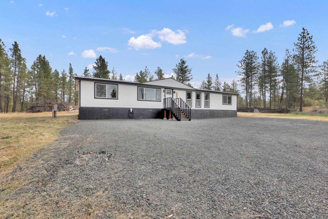 Do not miss this fully remodeled manufactured home located just 18 minutes away from Downtown Spokane on nearly 10 acres of land with a 60MPG well. This single level 1,782 square feet home consists of many features. 3 bedroom, 2 bathroom home featuring luxury amenities throughout. Starting with an open floor plan, luxury vinyl plank flooring throughout, shaker cabinets, marble and granite countertops, cafe stainless steel appliances, vaulted ceilings, heat pump, central heating and cooling, vinyl windows, and much more. The master suite includes a walk in closet, double vanities, and a mud set fully tiled shower with a bench. The enormous family room with a large kitchen peninsula will be great for entertainment. Make this your dream home!