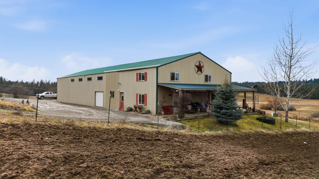Experience country living at its finest in this stunning barndominium-style home offering approx. 4,000 sq ft, 6 bedrooms, and 4 bathrooms. The spacious main-floor primary suite features a walk-in shower, while main-floor laundry adds everyday convenience. Inside, enjoy engineered real hardwood floors, granite countertops, and rustic wood doors and trim that bring warmth and character throughout. The impressive 48x40 shop with a 16x14 door is perfect for RVs, equipment, or hobbies. In the shop youll love the 30X20 workshop or hobby room. Step outside to a large covered patio, greenhouse, and 10 acres of rolling hills and sloping pastures ? all framed by breathtaking sunset views. A strong 7.5 GPM well completes this exceptional property, blending comfort, function, and wide-open space in ONE remarkable setting.